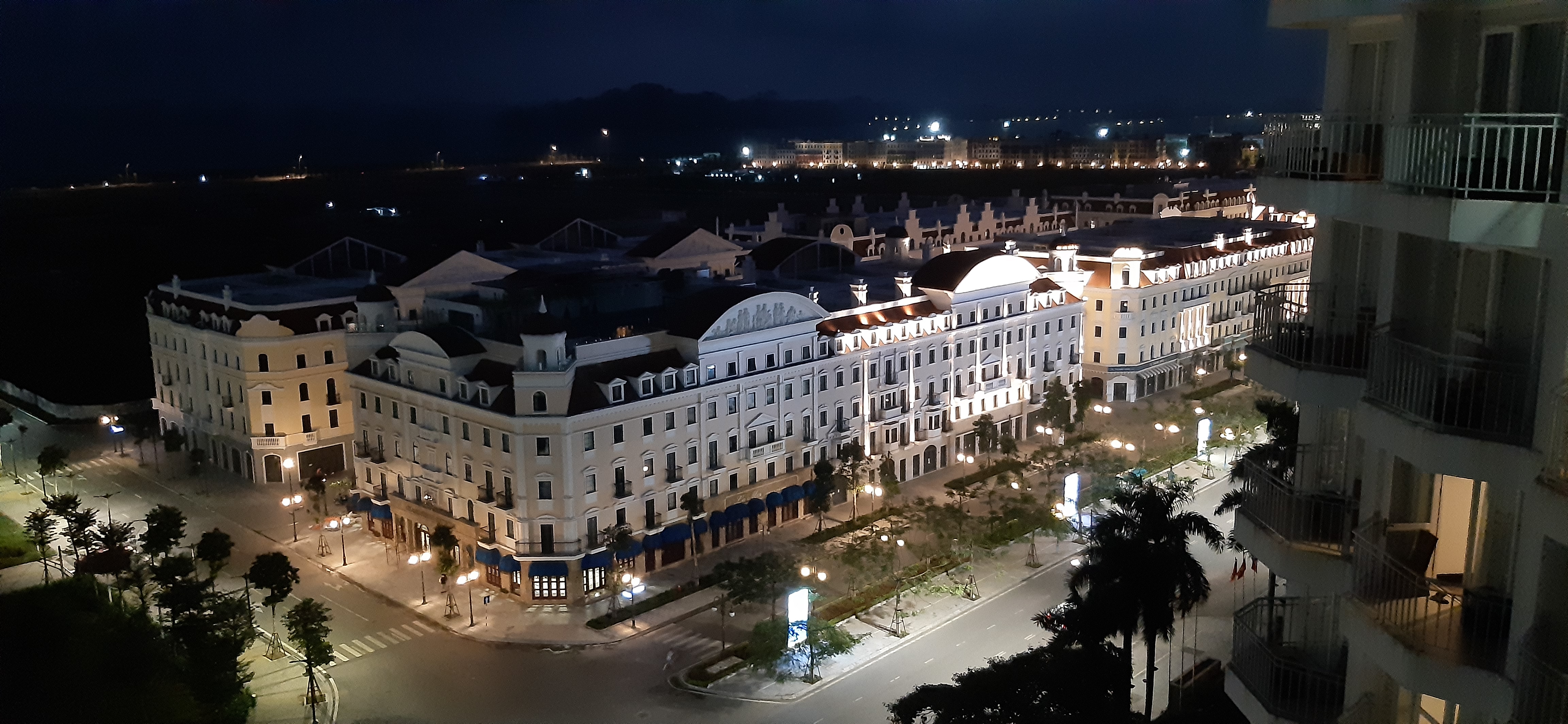 호텔앞에 보이는 호텔 야간 조명이 이쁘게 들어와있다.